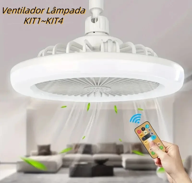 Continue lendoVentilador Lâmpada De Teto LED Silencioso, Moderno e com Controle Remoto, Bivolt,Prática Instalação E27 Imagine um ambiente bem iluminado, arejado