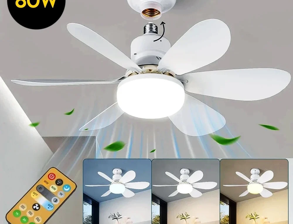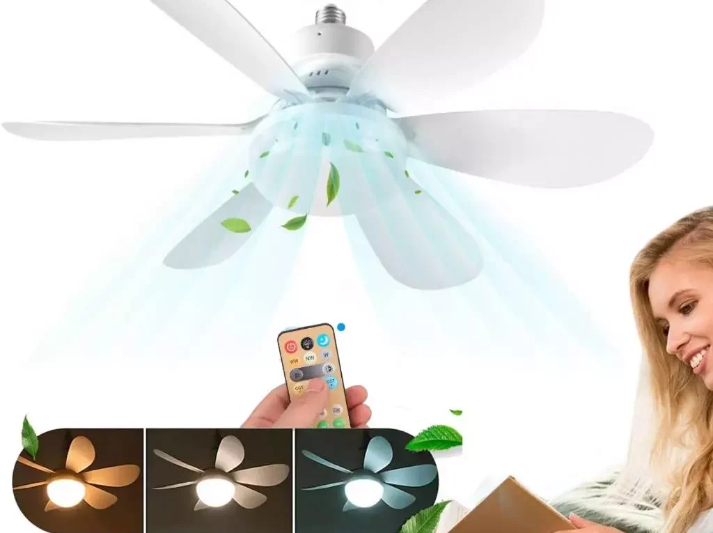 Continue lendoVentilador de Teto 80W Lâmpada 3 Cores E27 Silencioso Bivolt 2 em 1 Controle Remoto PREMIUM Branco Para quem busca