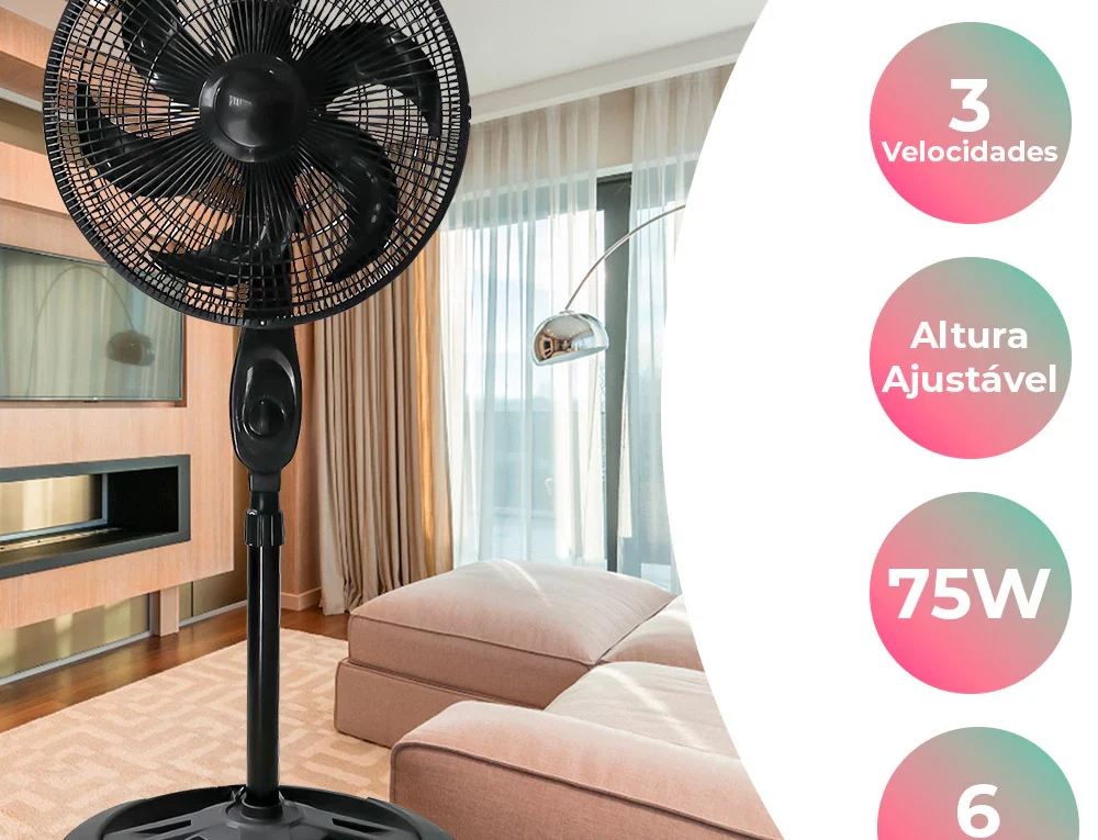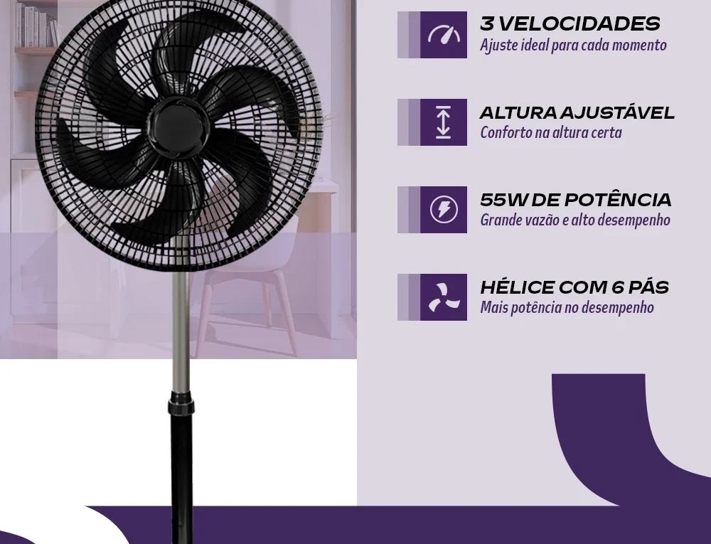 Continue lendoVentilador 30Cm De Coluna Turbo 55W Preto 127V O Ventilador 30Cm De Coluna Turbo 55W Preto 127V é uma excelente