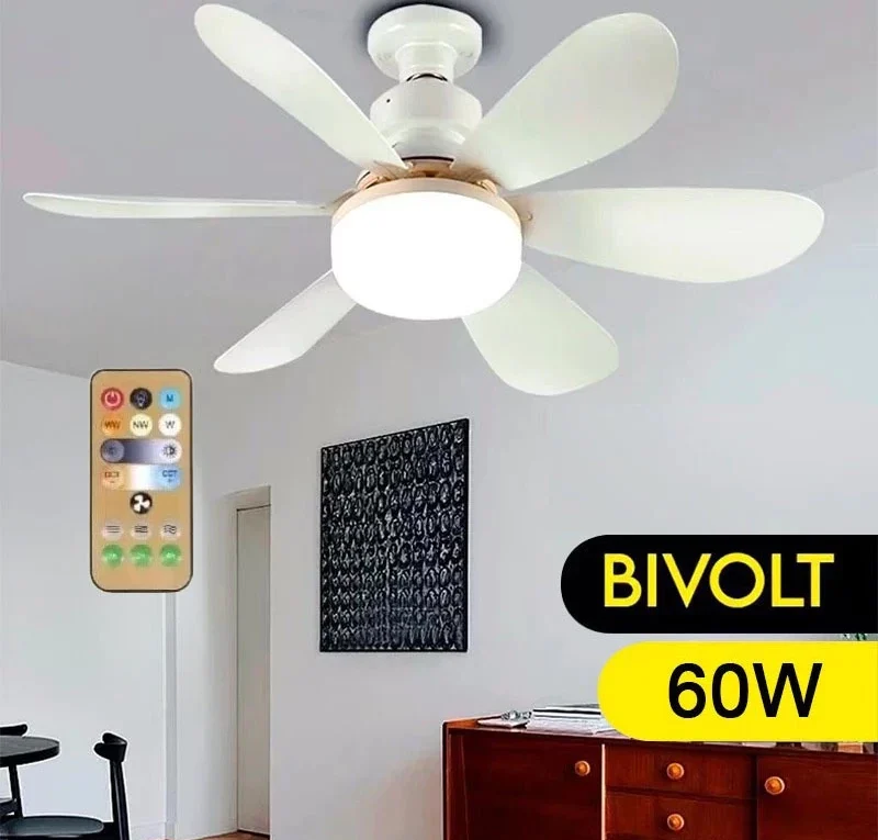 O Ventilador de Teto com Lampada LED Integrada Bocal E27 6 Pétalas 60w 3 Velocidades C Controle Remoto é uma opção prática e elegante para quem busca conforto e praticidade na iluminação e ventilação de ambientes internos. Ideal para salas, quartos e escritórios, ele combina funcionalidade e design moderno. Com controle remoto, você pode ajustar a velocidade e a iluminação sem precisar levantar-se, facilitando seu dia a dia.